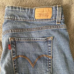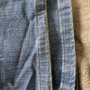 Slender boot cut 526 jeans. Original thick denim. Double button and zip close. A little bit of wear at the bottom but no fraying.