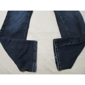 The product is a pair of Levi's 724 High Rise Straight jeans in size 25. These jeans feature a solid dark wash denim fabric with a zip closure and a high rise waist. The classic blue color and 5-pocket design make them a versatile wardrobe staple, suitable for all seasons. Made from a cotton blend, these machine washable jeans have a regular fit and a 29-inch inseam, perfect for everyday wear. The iconic Levi's logo accents add a stylish touch to this timeless and comfortable pair of denim pants.