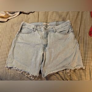 Stylish and comfortable light blue denim shorts perfect for casual outings. Features a classic design with a frayed hem for a trendy look.