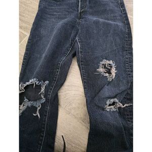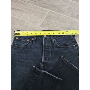 Women's Levi's 501 Skinny Jeans. Button fly. Distressed. Dark Wash. Size 25, approximate measurements in photos.