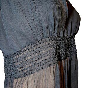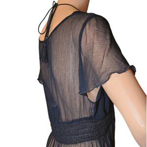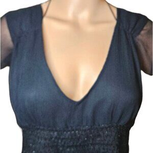 Womens Lg y2k EXPRESS Silk Blouse Flutter Sleeve Beaded Cinch Waist Babydoll 00s