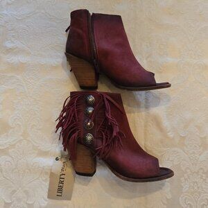 Women's Liberty Black Rojo Concho Fringe Peep Toe Booties