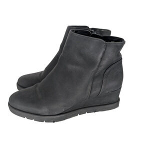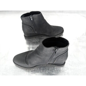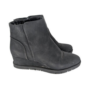 Womens Life Stride Swift Zipper Wedge Black Faux Leather Ankle Booties 9M