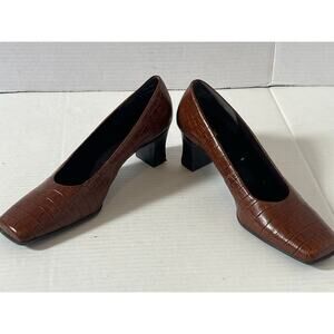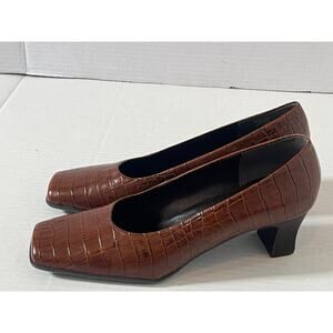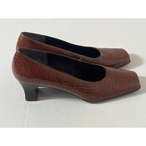 Women's LifeStride Studio Brown Croc Leather Embossed Heels Pumps Shoes Sz 9