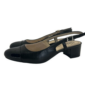 Womens LifeStrides Becoming Slingback pump shoes Black Sz 8W Strap Wedge Party
