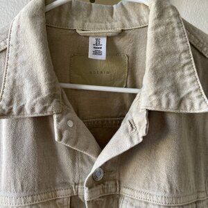 Classic light-wash beige denim jacket with button front and chest pockets. Gently worn, great condition.