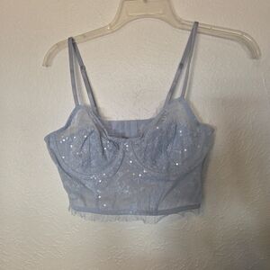 Sequin lace corset from Wild Fable with an underwire design and lace detail. Only wore once as part of a Y2K outfit. Adjustable straps and wide back strap for customizable fit.