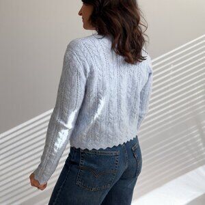 Women’s Light Blue Scalloped Cable Knit Cardigan