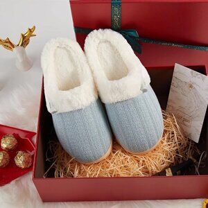 Women's Light Blue Scuff Faux Fur Lining Memory Warm Foam Plush Slippers Shoes