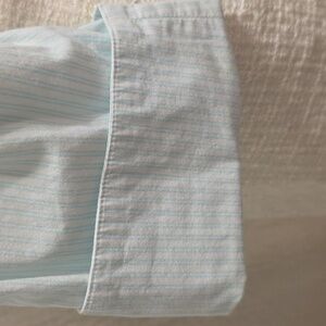 Elevate your wardrobe with this elegant light blue and white striped button down top. Perfect for any occasion, this top offers a classic look with a modern twist. Women's size medium. 97% cotton, 3% spandex. Kim Rogers brand. Feel free to ask any questions!