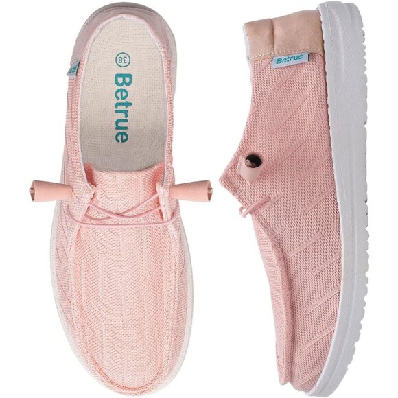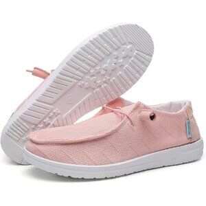 Women's Light Pink Casual Slip On Deck Canvas Loafers Sneakers Boot Shoes