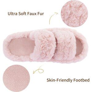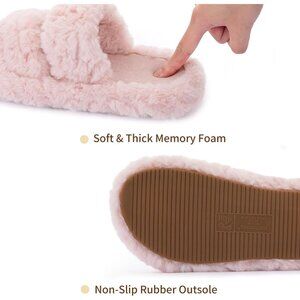 Women’s Light Pink Pluffie Arch Memory Foam Cozy Faux Fur Open Slippers Shoes
