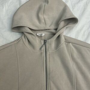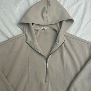Unique women’s quarter zip crop hoodie - no label but estimated Women’s M. See measurements below and in image.