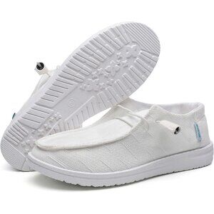 Women's Lightweight Casual Slip On Deck Canvas Loafers Sneakers Boot White Shoes