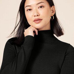 Women's Lightweight Cotton Blend Turtleneck Sweater Plus Size Black