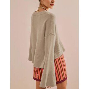 Features: This cozy pullover has a relaxed, slightly slouchy fit with adorable bell sleeves and playful side slits. Made from a soft, stretchy blend of acrylic, nylon, and PBT, it’s perfect for layering or wearing solo. The scoop neck and raw seaming give it subtle style cues, while the ribbed cuffs keep it polished.
