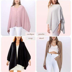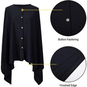 *【UNIQUE DESIGN】:These versatile shawl wraps for women are designed with a 6 button front fastening and an asymmetric hem. This is a poncho sweater women will wear again and again as a wrap, poncho or nursing shawl.