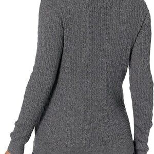 Women's Lightweight Long-Sleeve Cable Crewneck Sweater Available in Plus Size