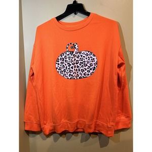 Women's Lightweight Orange Animal Print Pumpkin Sweatshirt Long Sleeve XL Fall