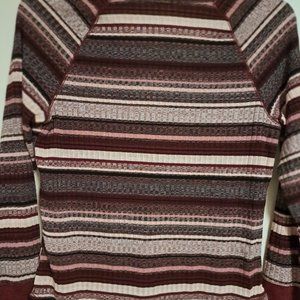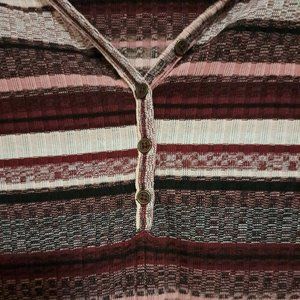 Lightweight Ribbed Top Size LG, V Neck, Striped, Stretchy W Buttons