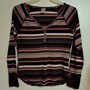Womens Lightweight Ribbed Top Size LG, Long Sleeve, V Neck, Stretchy W Buttons