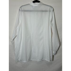 Women's Lightweight White Cotton Pinstripe Tuxedo Blouse Front Ruffles Size 18