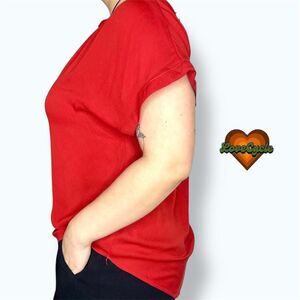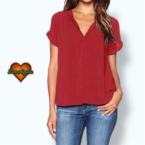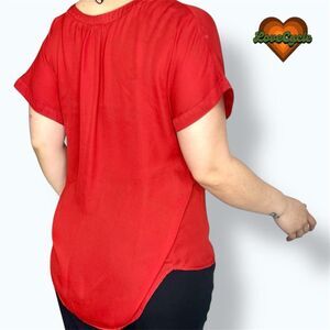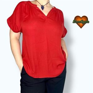 Women's LilBetter Red Split Neck Short Sleeve Blouse – Size L