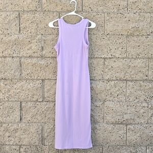 Elegant lilac, sleeveless, scoop neck, midi dress. Perfect for any occasion and warm weather!
