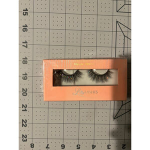 New with tags and in the original box, these are Lilly Lashes in the style "Feelin' Festive". The lashes are black with multi-colored glitter accents. The packaging is a peach-colored box with silver accents. The box is sealed in plastic. The lashes are designed to enhance the appearance of the eyes and are intended for cosmetic use.