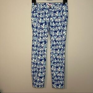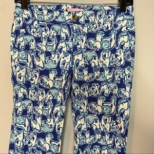 Women’s Lilly Pulitzer Kelly Get trunky blue elephant printed pants size 00