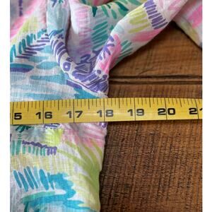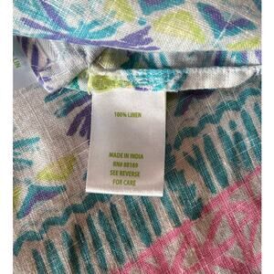 This blouse is in excellent pre-loved condition! No rips or stains. This beautiful Lilly Pulitzer 100% linen blouse is perfect for Summer! It is a tunic style top with a stunning tropical print. It is long sleeve, but can be rolled up to make it 3/4 sleeve. All measurements are in the photos. Women's size XS!