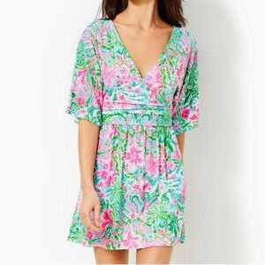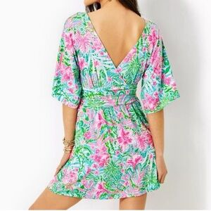 Womens Lilly Pulitzer Parigi Skort Romper Amalfi Blue Leaf it Wild