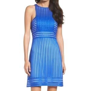 Women's Lilly Pulitzer Rae Shift Vibrant Blue Dress Solid Crochet Stripe size XL.