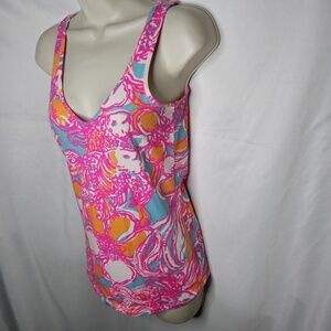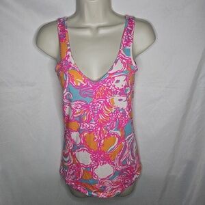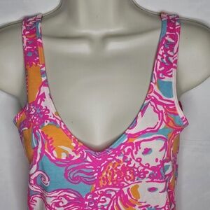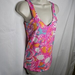 Womens Lilly Pulitzer Tabbie Feeling Tanked Shorely Blue V Neck Tank Top Size S