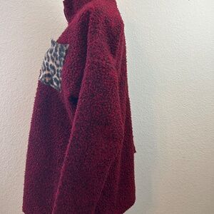 Women’s Lilypad Brand Maroon w/ Cheetah Print Pocket Fleece Jacket | Size L