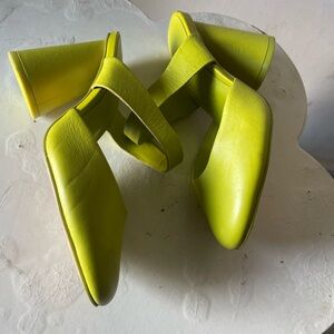 Step out in style with 'this vibrant lime green mules. Perfect for adding a pop of color to your outfit. Worn once to a wedding in a color popping, beautiful, eye-catching mules. .