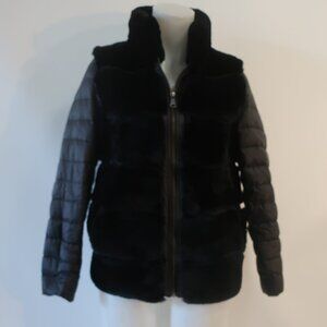 Womens Linda Richards Luxury Black Genuine Rex Rabbit Fur Puffer Jacket Coat XS