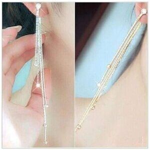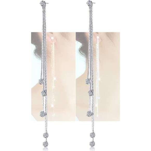 Women's Linear Long Tassels Diamante Rhinestone Dangle Party Eardrop Earrings