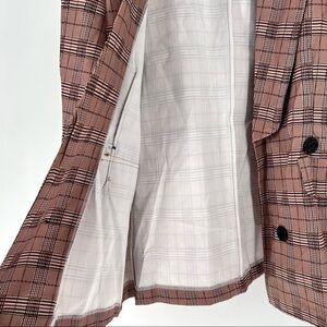 Lined Double Breasted Plaid Blazer Coat in Dusty Pink/Combo.