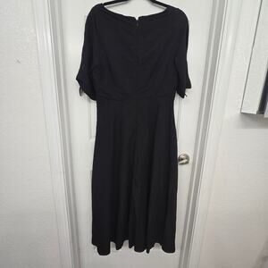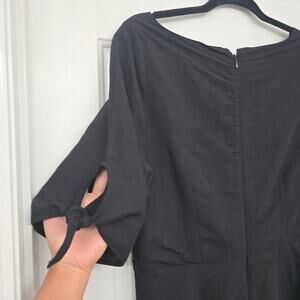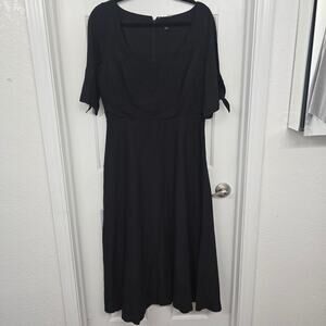 Women’s Linen Blend Black Midi Dress Coastal Minimalist OldMoney work to evening