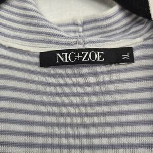 Nic + Zoe women’s open front cardigan in classic blue and white stripes. Crafted from a breathable linen blend, this lightweight sweater is perfect for layering through spring, summer, and fall. The relaxed, drapey fit and long sleeves make it ideal for casual days, beach cover-ups, or adding a touch of boho charm to any outfit. Size XL offers a comfortable, easy fit. Lagenlook