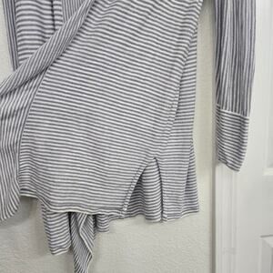 Women’s Linen Blend Striped Open Cardigan Blue White XL Lightweight Lagenlook
