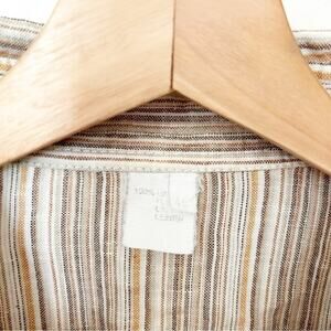 Womens Linen Button-Down Shirt Beige Striped Long Sleeves Collared Size 46