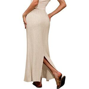 Flattering Fit:This Flowy Long Skirt beautifully enhances your curves. The ankle-length design features a flared hem that subtly tapers, while the rear slit offers extra freedom of movement and comfort.