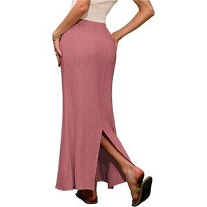 Womens Linen Flared Maxi Skirt with Back Slit Pink