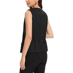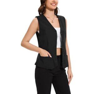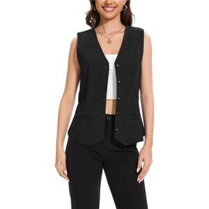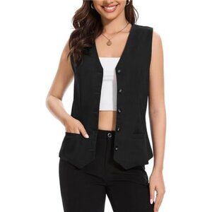 Womens Linen Vest Waistcoat Lightweight V Neck Black