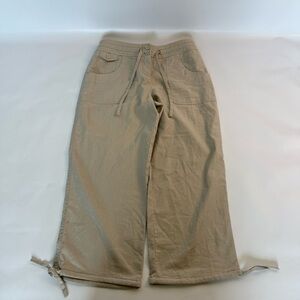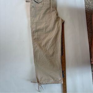 Women’s Linen blend Beige Cargo Pants size small Wide Crop 23” inseam.