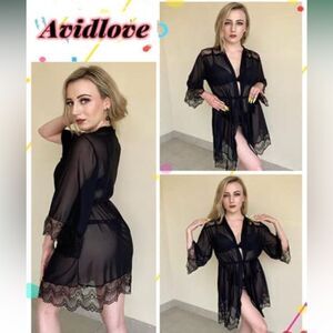 Womens Lingerie RobeâLace Kimono Robe Sexy Bathrobe Babydoll Nightgown Large