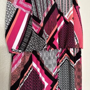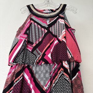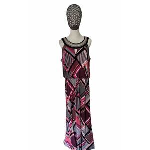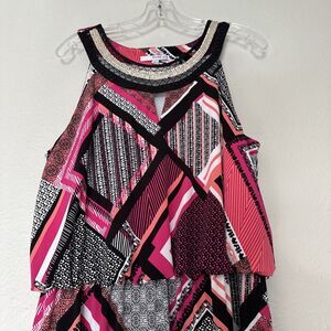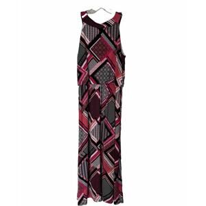 Women’s Embellished Multicolor Dress Long Sleeveless Geometric Print Halter Sz L
