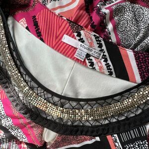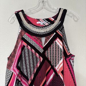 Women’s Liquid Knit Dress Embellished Multicolor Long Sleeveless Geometric Sz L